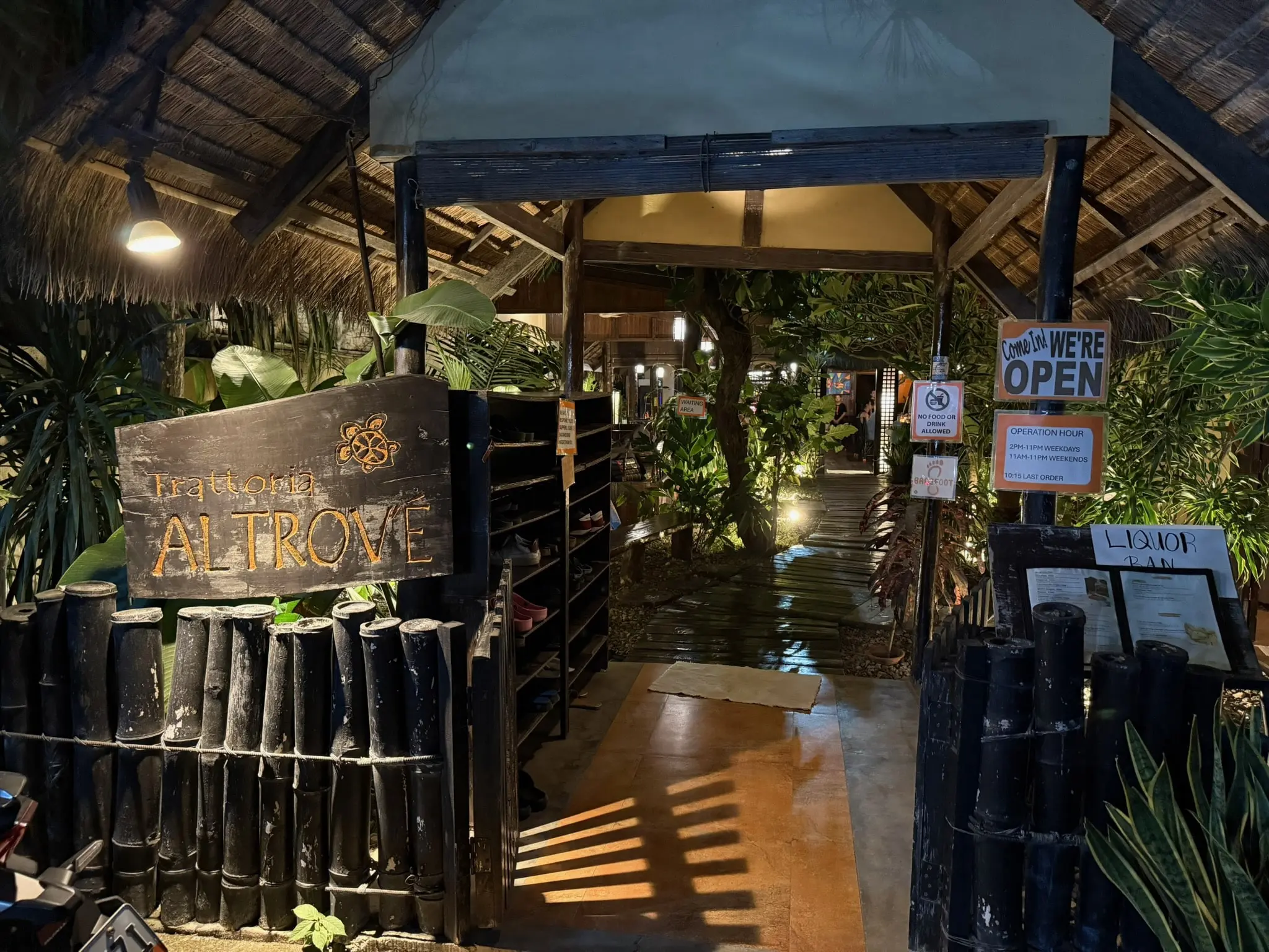 Trattoria Altrove is an established chain of Italian al fresco restaurants throughout the Philippines. It’s the place to go if you are feeling a bit fancy and are craving some proper stone baked Italian pizzas. The pizzas are all handmade and cooked in an impressive Italian brick pizza oven which is showcased in front of the restaurant. The rest of the menu is fantastic as well, including their pasta dishes. Also, the decor and atmosphere is stunning, with a beautiful tropical garden surrounding you and a relaxed barefoot policy that adds to the serene, island vibe. Definitely a treat worth taking during your trip here.