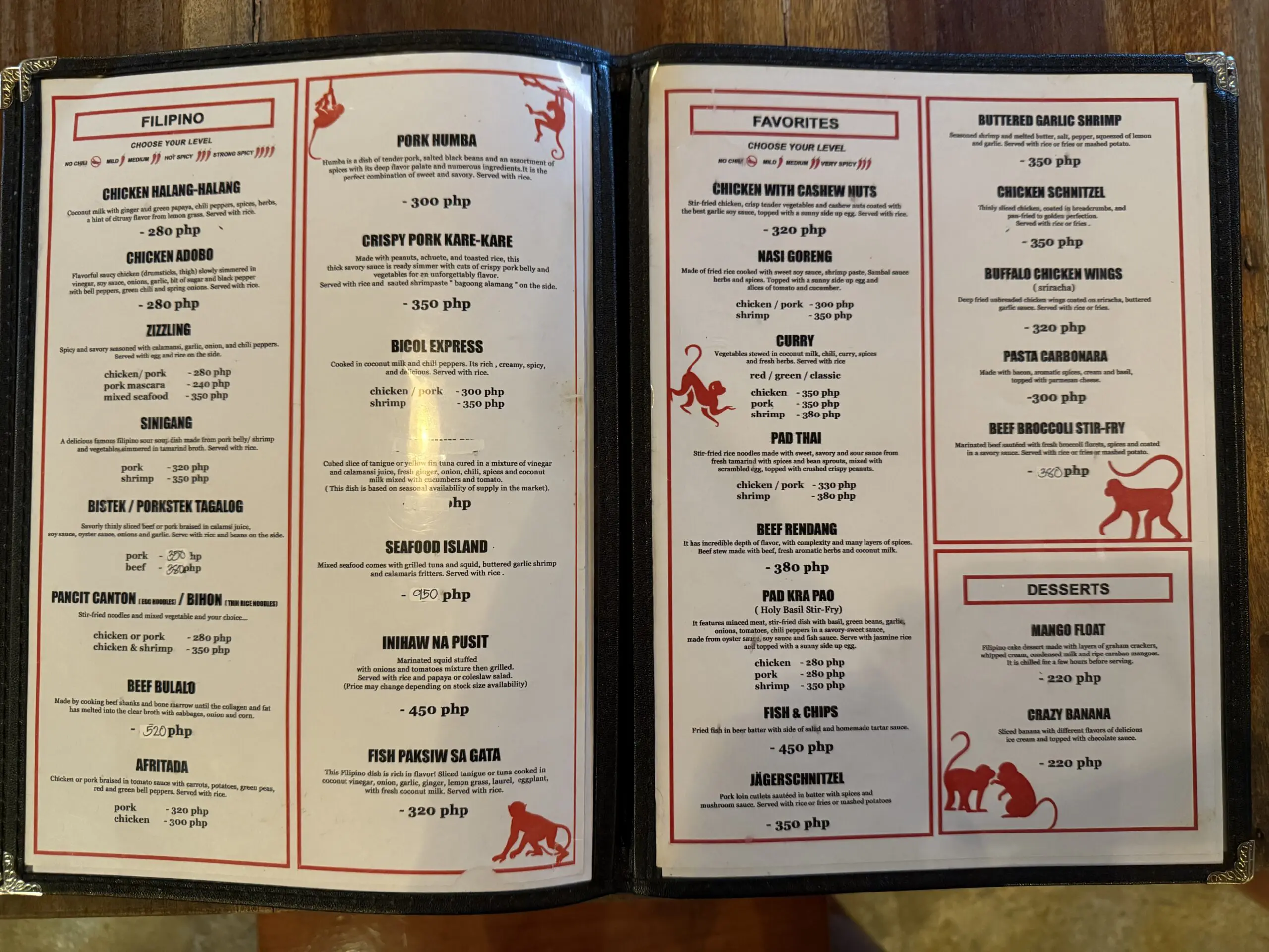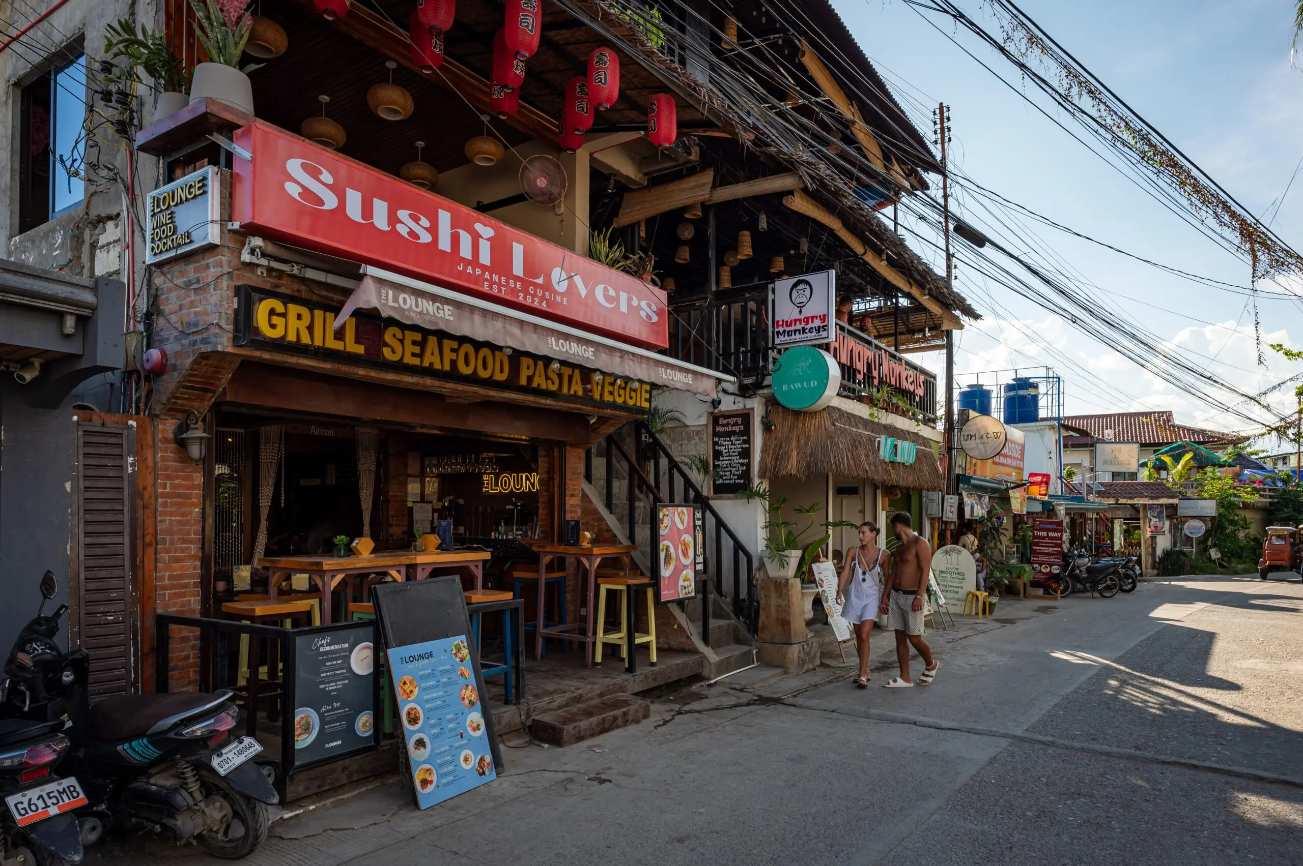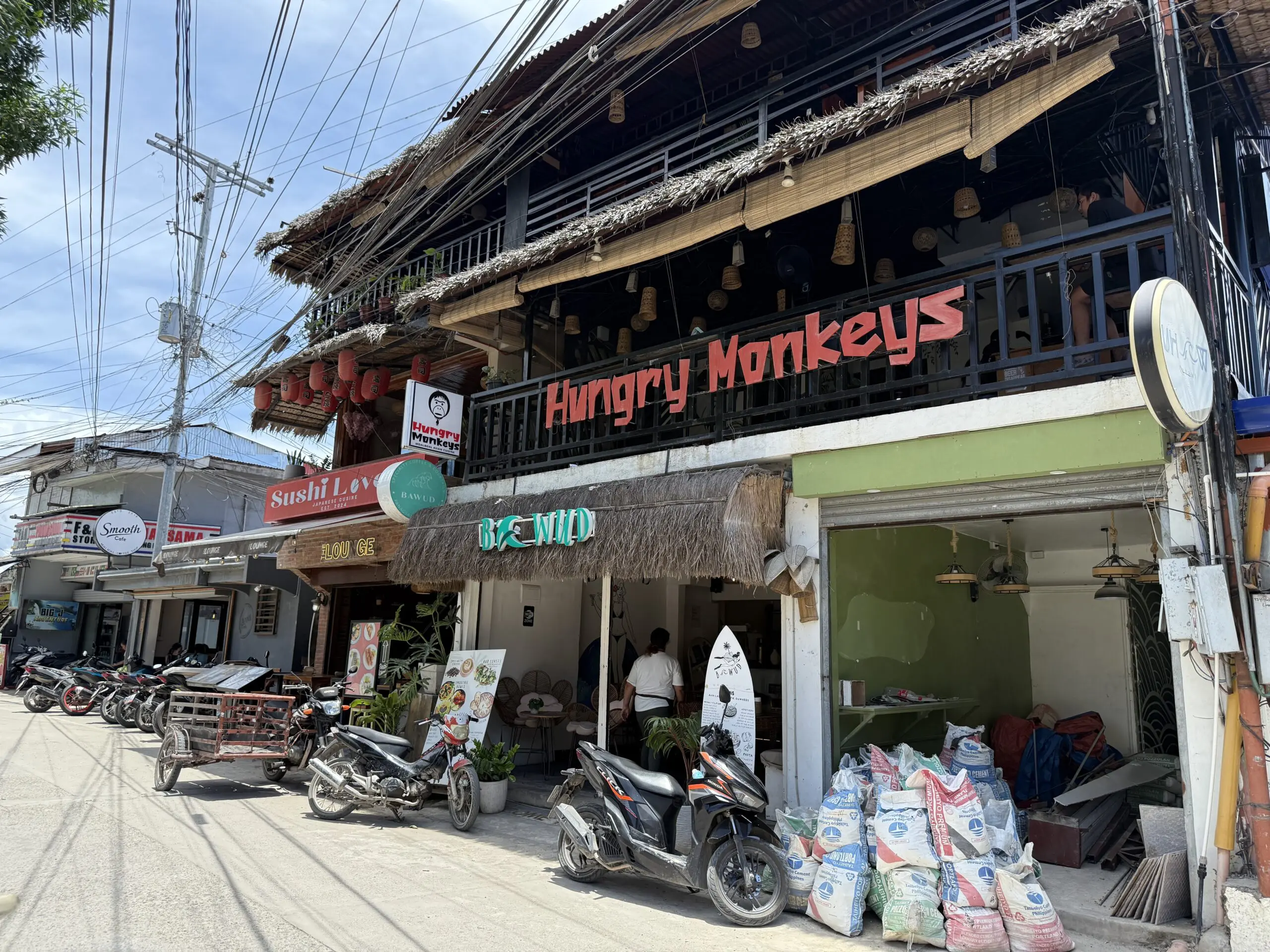 Hungry Monkeys is one of the most popular restaurants around Panagsama beach and during the evening hours of the peak season there is almost always a queue. So expect to wait, but will it be worth it? Definitely. This restaurant serves a wide range of dishes, from Filipino and Asian food to Western food. In our opinion, it’s the second best place to get your hands on some Filipino dishes. They are situated on the open 2nd floor which provide great views of the town and even a bit of a breeze. Its a fun place for groups as well as there is a shelf containing an awesome selection of games to choose from and help the wait like Jenga, Cards Against Humanity and more.