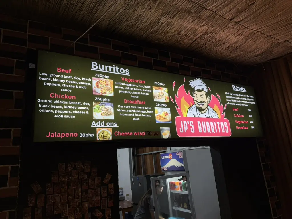 You wouldn’t think you’d get fantastic Mexican food in a small Filipino town, but JP Burritos proves this otherwise. This small local burrito chain ( with 2 stores so far) is linked with a gym (Jungle gym) and hands down provides the best thing you could ever eat when you are starving and looking for something quick and easy to eat. They only sell burritos and naked burritos that are filled to the brim and with excellent flavour, guaranteeing you a great meal. There’s even the option to cheese wrap your burrito if you need the extra calories. Also, if you are into food challenges, there’s one here. The challenge is to eat a whole burrito in less than a minute and 30 seconds to earn a place on their wall of fame.