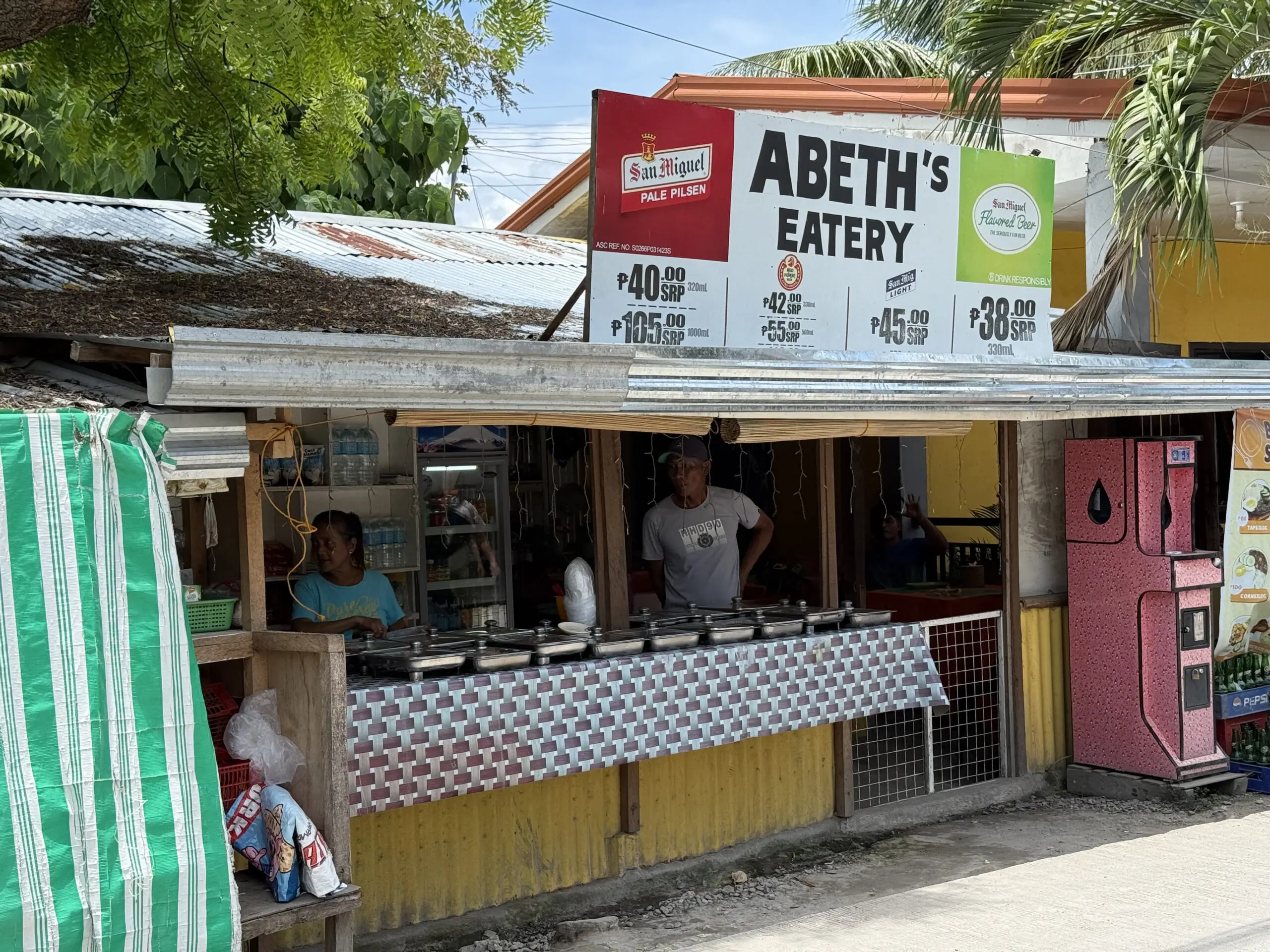 These are best known as local ‘eateries’ and you can find them scattered all around Moalboal. If you are on a budget, these are the places to go as they provide the cheapest option of meals around here. Eateries are normally own by a Filipino family and going to one really feels like stepping into somebodies kitchen. They offer very tasty homestyle Filipino food where all the dishes are laid out for you to choose from in large pots/ covered trays. All dishes are served with rice and some things you can expect are stir fried vegetables, meats in sauces, fried fish, soups and ‘delicacies’ like stir fried liver. They also serve the most authentic Filipino breakfasts here like Silog and Itlog. Top tip: come by early in the morning to get the best and freshest selection, these shops also offer takeaway so you can get all your three meals sorted in a matter of minutes. Most food disappears after around 2pm.